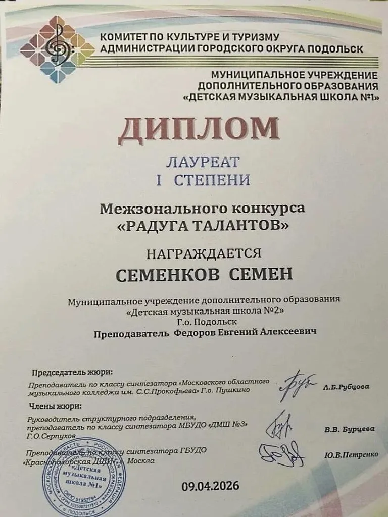 09.04.2026 Межзональный открытый конкурс исполнителей на синтезаторе «Радуга талантов»